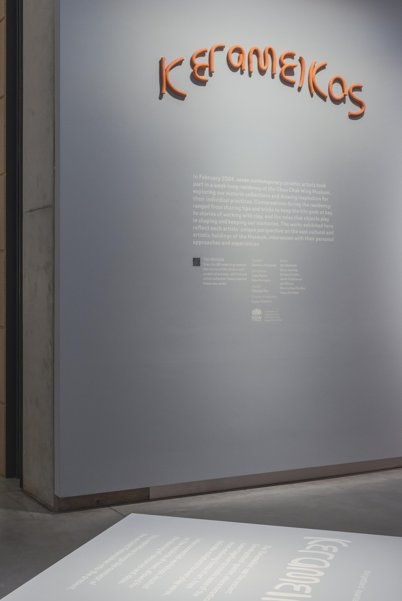 • Seven leading Australian ceramicists. Each gets a week in the Chau Chak Wing Museum. Their brief? Respond to the collection, make something new. Here’s the twist… we won’t know what it is until it’s done. Your brief? Make a space that feels like a process. Don’t build anything new. You’ve got plinths, finishes, colours, graphics and arrangement; that’s your tool kit.